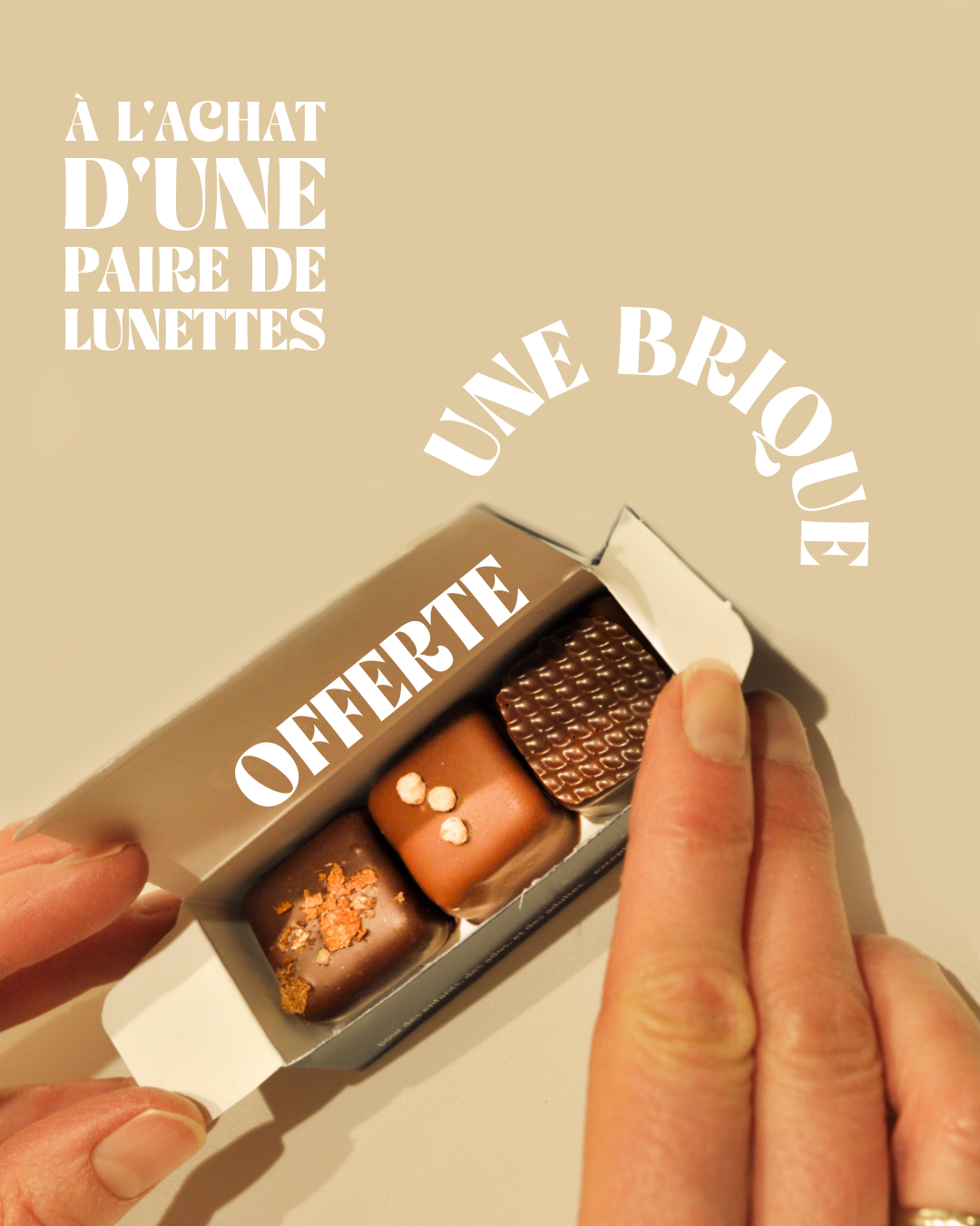 En février, pour tout achat de lunettes et/ou de verres, une brique de pralines vous est offerte